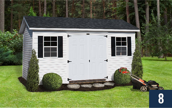 Designed to give you a maintenance free yet elegant storage shed for any outdoor space. Featuring 7/16″ sheathing on the walls and roof for extra durability, added with the attention to detail as well as price, you can’t go wrong with the Vinyl Standard.