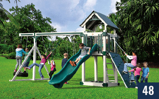 Constructed of durable vinyl, our playsets are a stress-free and maintenance-free way to encourage physical activity and a vivid imagination.